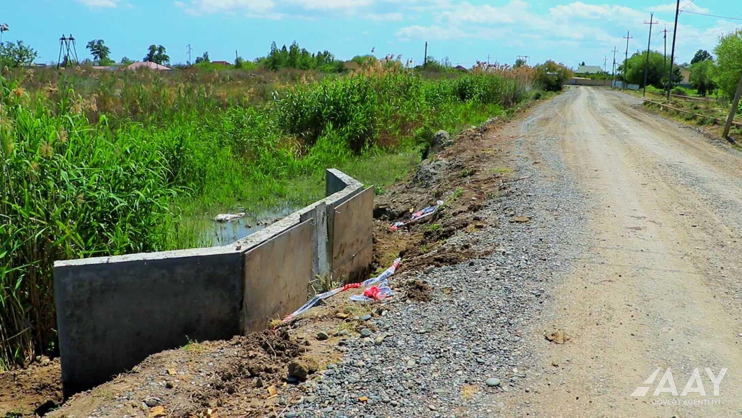 Layihə üzrə kənd təsərrüfatı məhsullarının suvarılması və məişətdə istifadəsi üçün yolun altından suların ötürülməsi məqsədilə mövcud metal və dəmir-beton borular bərpası zəruri olan yerlərdə müxtəlif diametrli yeni boruların tikintisi işləri aparılır.