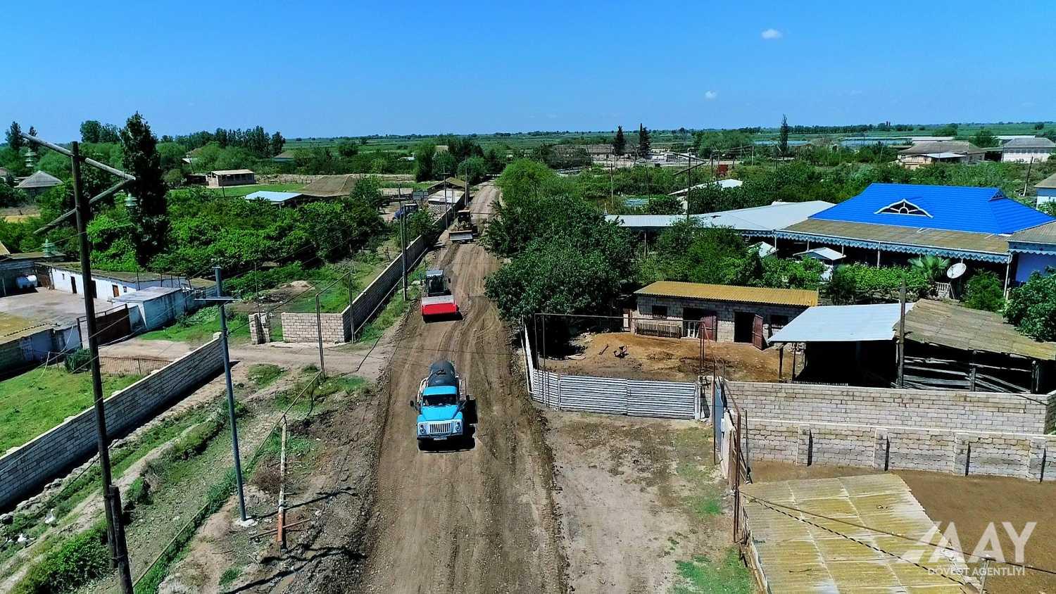 AAYDA tərəfindən tikinti ərazilərinə kifayət qədər canlı qüvvə və texnika cəlb olunmaqla aparılan yenidənqurma işləri çərçivəsində uzun müddət əsaslı şəkildə təmir olunmadan istismar olunan və deformasiyaya uğramış yollar 4-cü texniki dərəcəyə uyğun təkmilləşdirilir.