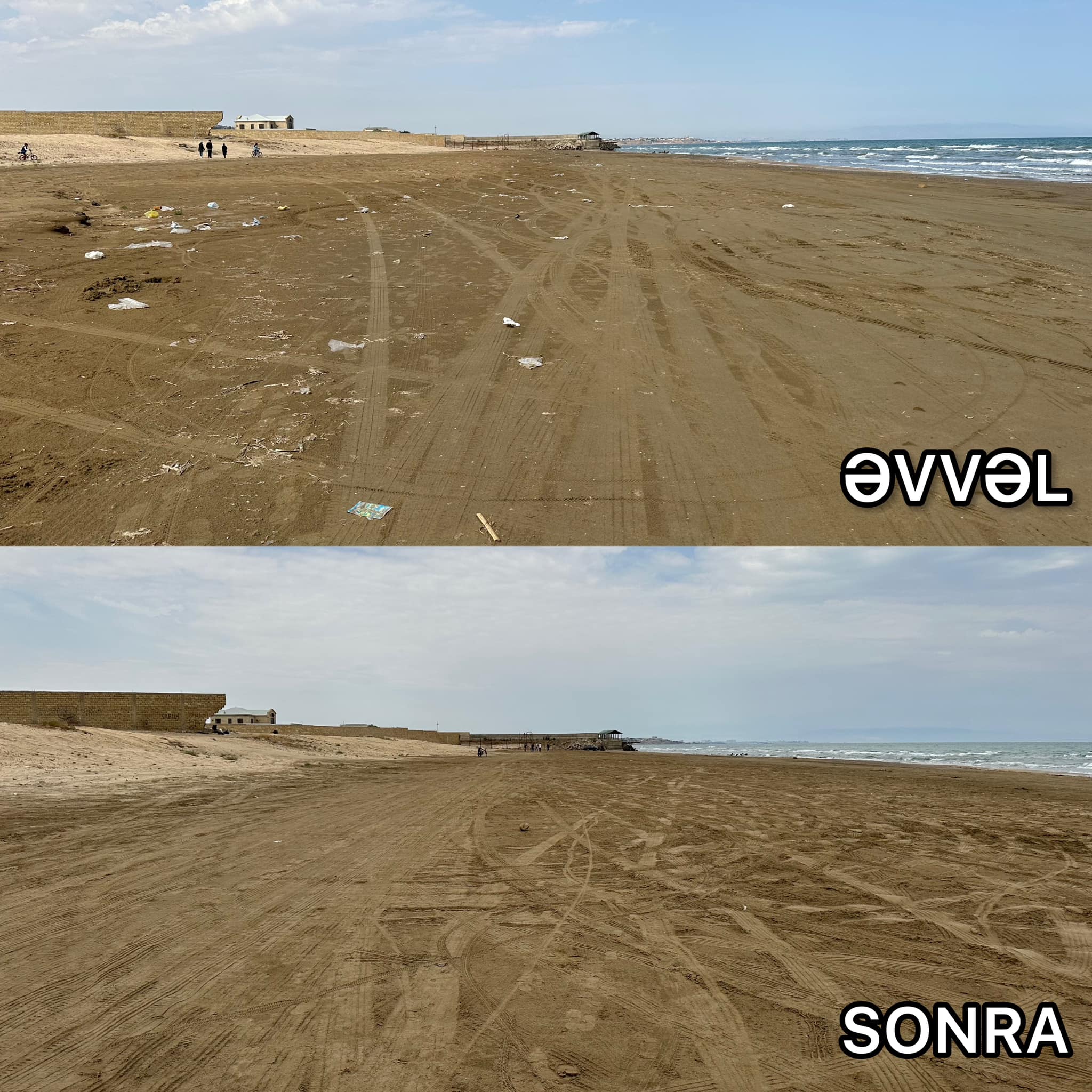 Mis.az xəbər verir ki, o, bir qrup gənclə birlikdə "Təmiz dünya" devizi altında təmizlik aksiyası keçirib. Aksiya zamanı 2 hektardan artıq sahil zolağını plastik və digər tullantılardan təmizlənıb: