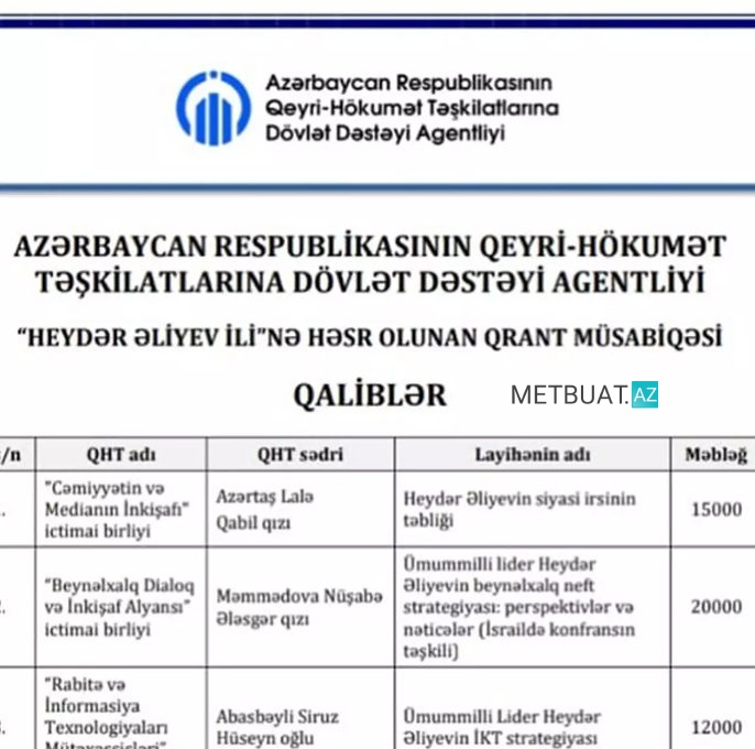 Tanınmış aparıcı Lalə Azərtaş “Heydər Əliyev ili”nə həsr olunmuş xüsusi qrant müsabiqəsinin qalibi olub.