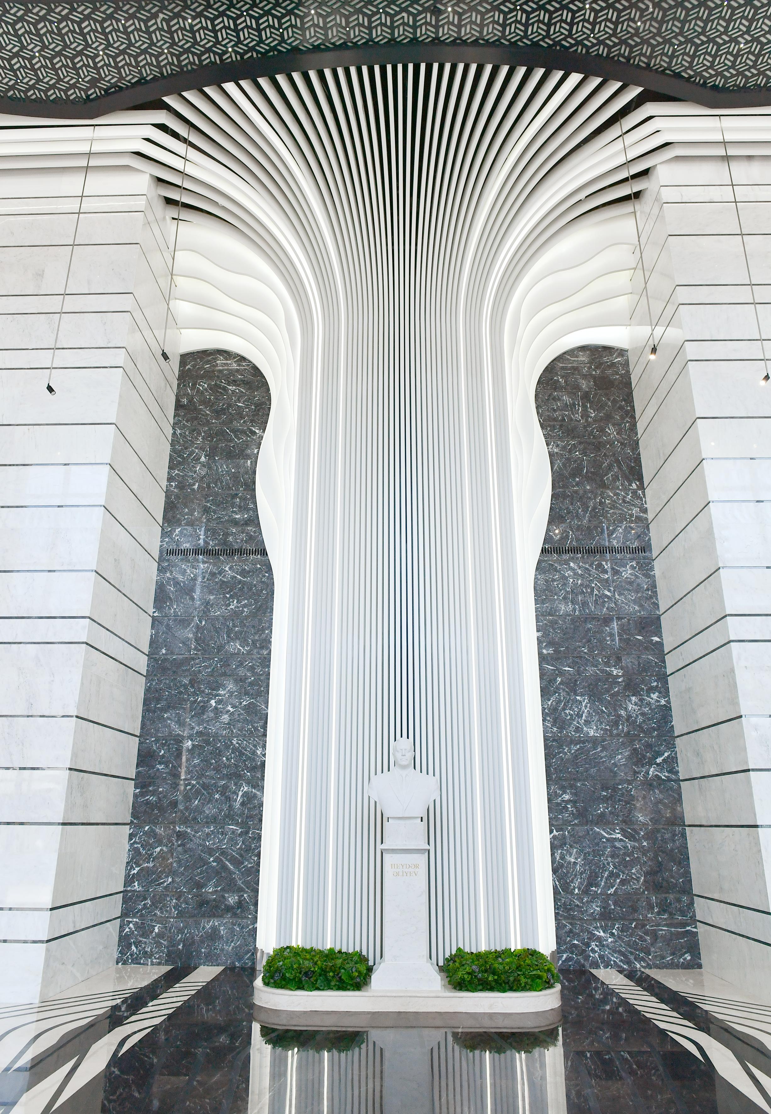 Binanın hündürlüyü olan 12 metr foyesində “Əbədiyyət” kompozisiyası nümayiş olunur. Kompozisiyanın müəllifi rəssam-heykəltəraş Rəşad Mehdiyevdir.