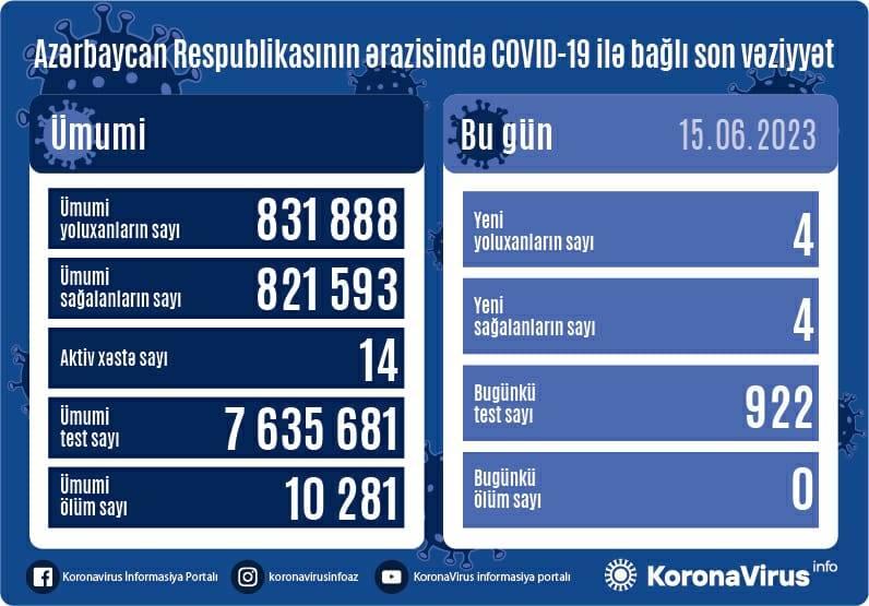 COVID-19-a yoluxan 4 nəfər sağalıb.