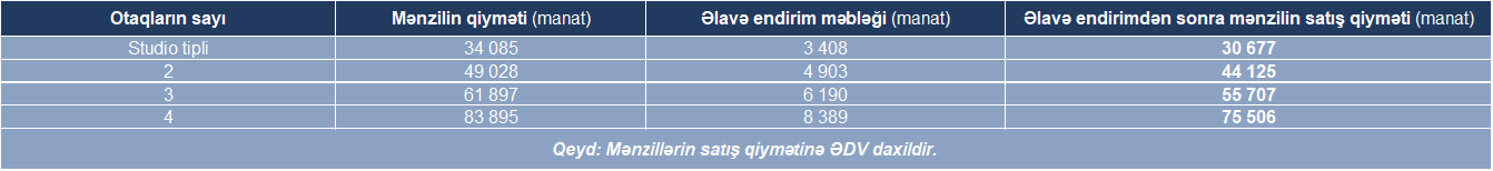 Qeyd: Mənzillərin satış qiymətinə ƏDV daxildir.