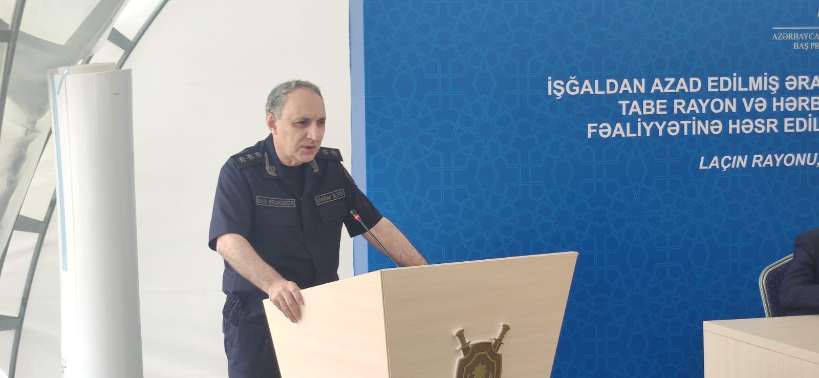 Xatırladaq ki, iiyunun 22-də Baş prokuror Kamran Əliyev işğaldan azad edilmiş Laçın şəhərinə gedib.