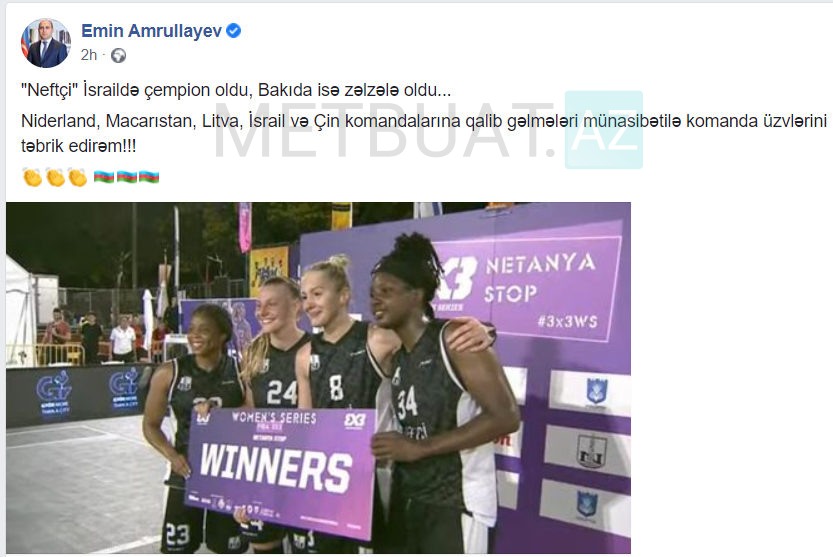 "Neftçi" İsraildə çempion oldu, Bakıda isə zəlzələ oldu... Niderland, Macarıstan, Litva, İsrail və Çin komandalarına qalib gəlmələri münasibətilə komanda üzvlərini təbrik edirəm!!!"