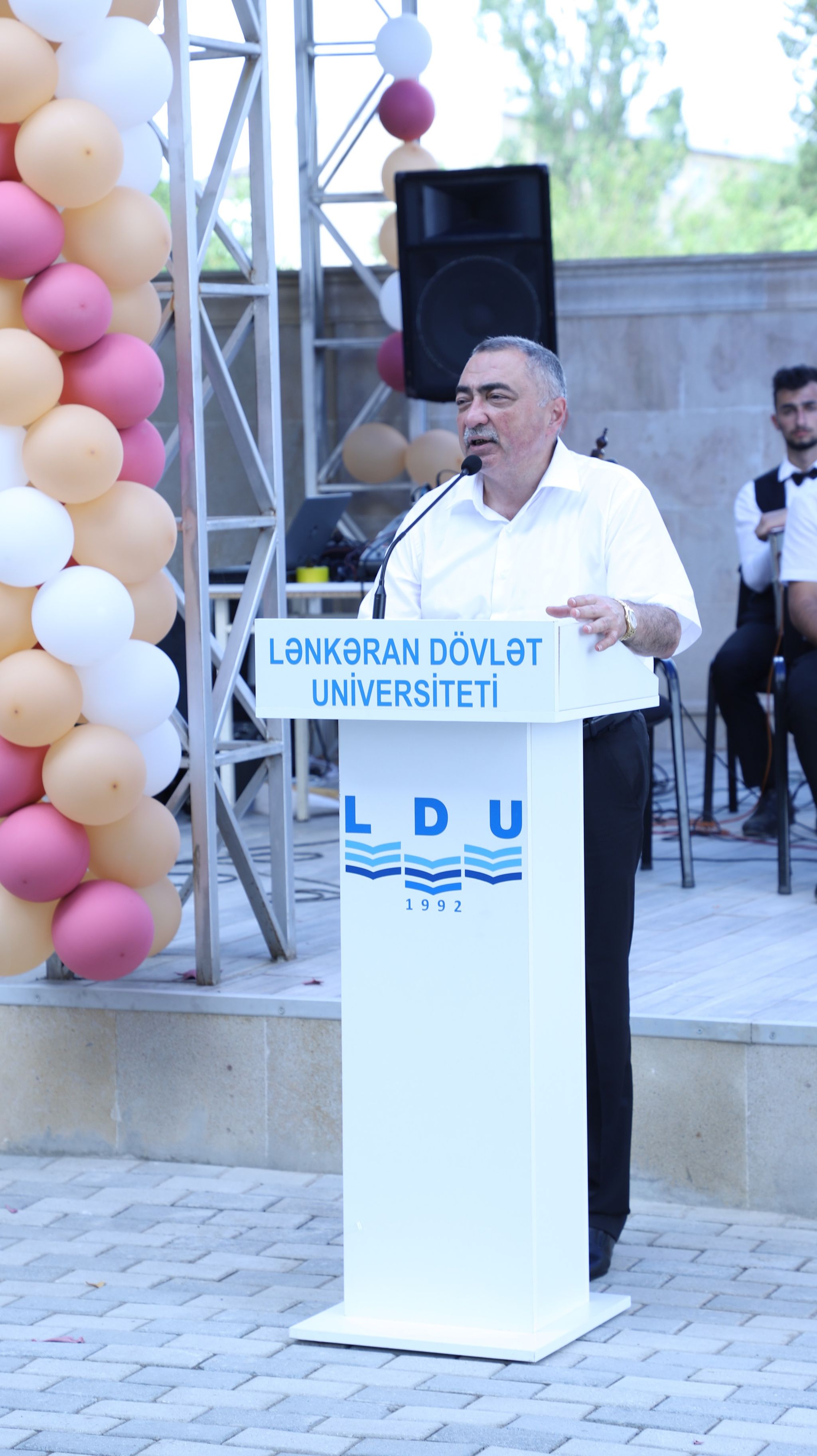 Natiq İbrahimov təbrik çıxışında qeyd edib ki, bu il LDU-nu bakalavriat səviyyəsində30 ixtisas üzrə 880 məzun, magistratura səviyyəsində 25 ixtisaslaşma üzrə 145 məzun bitirir. LDU-nun son illərdə təhsilin inkişafı istiqamətində uğurlarından, maddi-texniki bazanın əsaslı şəkildə yenilənməsindən, dünya standartlarına uyğunlaşdırılmasından danışan universitet rəsmisi 300 yerlik tələbə yataqxanasının, baytarlıq klinikasının növbəti tədris ilinə qədər hazır olacağını deyib. Əmin olduğunu bildirib ki, bu gün müstəqil həyata mütəxəssis kimi vəsiqə alan məzunlar Lənkəran Dövlət Universitetinin adını hər yerdə uca tutacaq, onlara bəslənilən etimadı layiqincə doğruldacaqlar. N.İbrahimov təhsilin keyfiyyətinin yüksəldilməsi, məzunların praktik hazırlıq səviyyəsinin artırılması, hazırlanan kadrların müasir tələblərə cavab verməsi istiqamətində başlanan kompleks işlərin bundan sonra da ardıcıl olaarq davam etdiriləcəyini deyib.