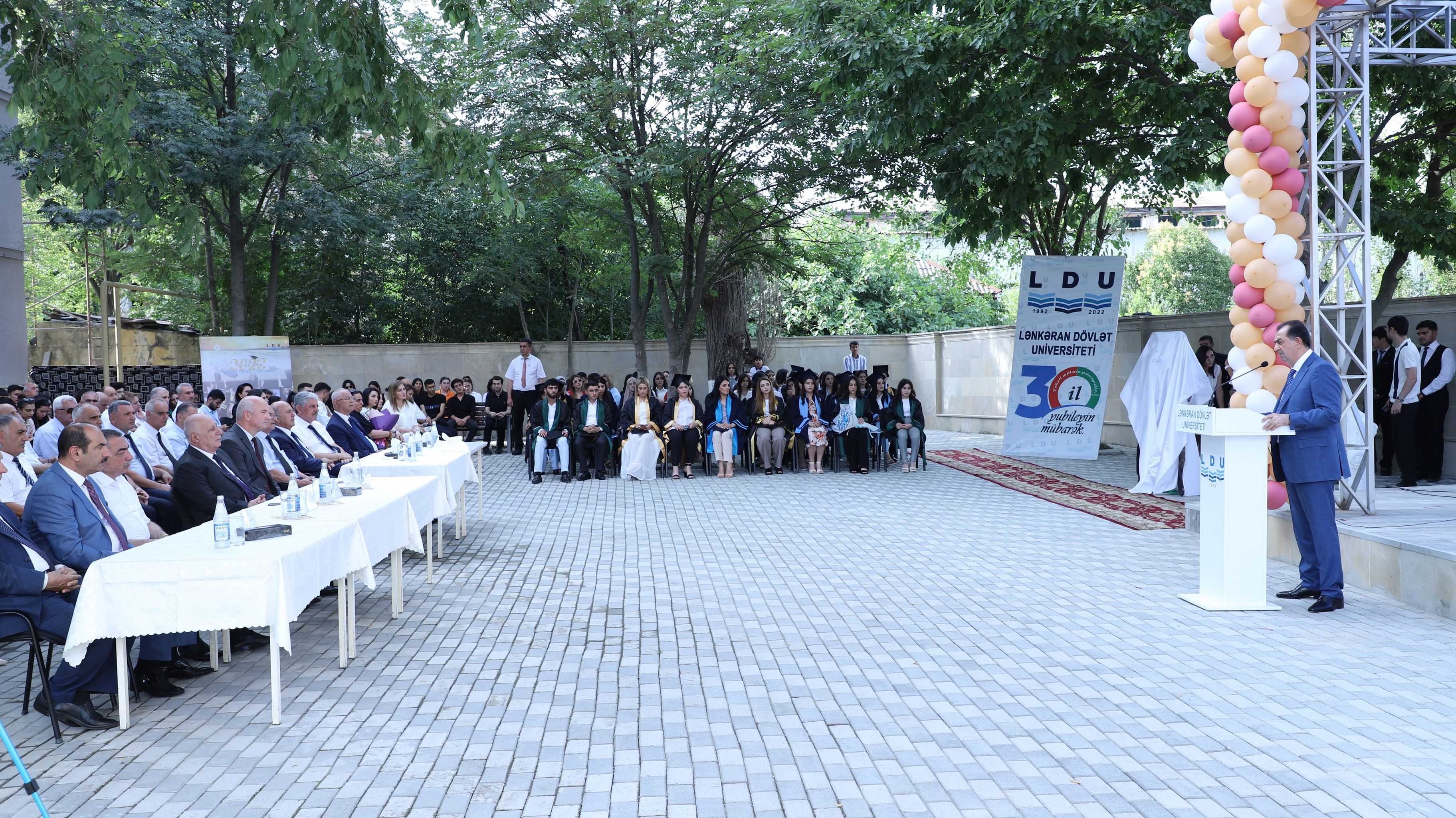 Mis.az xəbər verir ki, universitetin rektoru, professor Natiq İbrahimov tədbir iştirakçılarını salamlayaraq LDU-nu bitirən bütün məzunları təbrik edib, gələcək həyat yollarında uğurlar arzulayıb. Prof.Natiq İbrahimov LDU-nun 2022/ 2023-cü tədris ilində qazandığı uğurlardan söz açarkən universitetin 30 illik yubileyinin təntənə ilə keçirilməsini ilin ən ələmətdar hadisəsi kimi dəyərləndirib. Bildirib ki, LDU-nun fəaliyyəti dövründə ilk dəfə olaraq universitetin 5 əməkdaşı ölkə prezidenti cənab İlham Əliyev tərəfindən yüksək dövlət təltifləri ilə mükafatlandırılıb.
