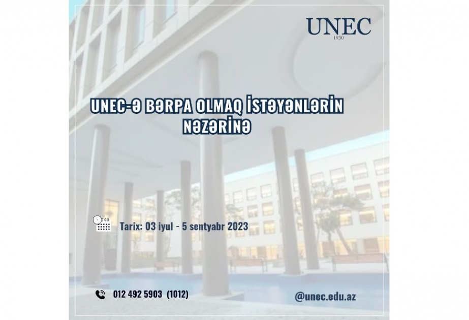 Azərbaycan Dövlət İqtisad Universitetinə (UNEC) bərpa olunmaq istəyənlər üçün sənəd qəbulu elan edilir.