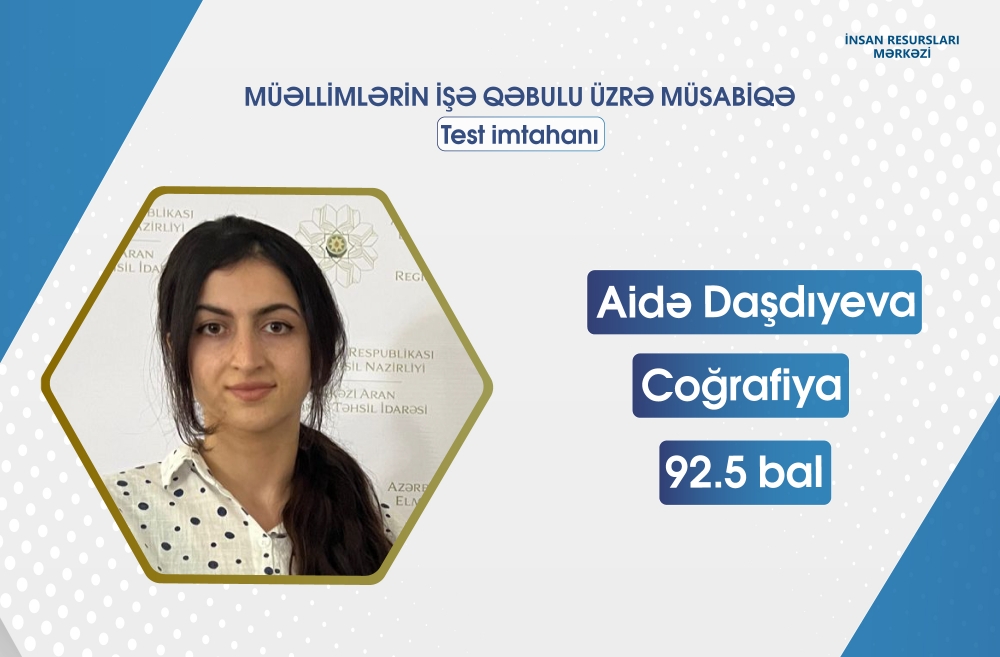 Təhsil İnstitutunun nəzdində İnsan Resursları Mərkəzindən verilən məlumata görə, test imtahanı mərhələsində coğrafiya fənni üzrə ən yüksək balı Aidə Daşdıyeva (100/92,5), Aytac İsgəndərli (100/92,5) və Röyal Kərimov (100/91,25), tarix fənni üzrə isə ən yüksək balı Kamran Xəlilov (100/93,75), Günel Salmanova (100/91,75) və Rəhman Süleymanlı (100/91,75) toplayıblar.