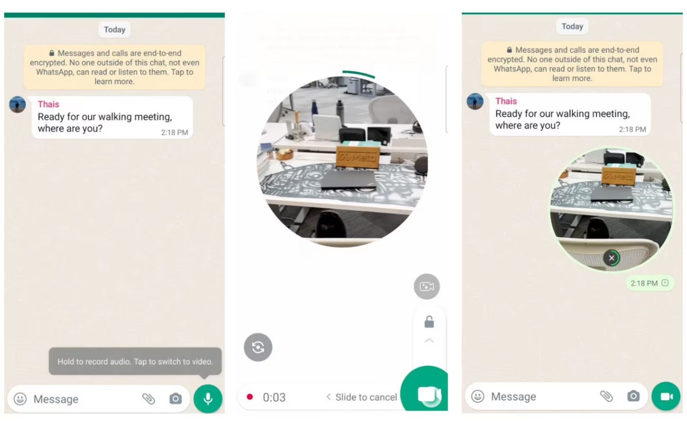 Artıq istifadəçilər həmsöhbətlərinə 60 saniyəlik video mesajlar göndərə bilərlər. Bunun üçün mətnlərin daxil edilməsi sahəsinin sağ hissəsindəki video düyməsini sıxıb saxlamaq lazımdır. Göndərilən görüntülər dairəvi şəkildə olacaq.