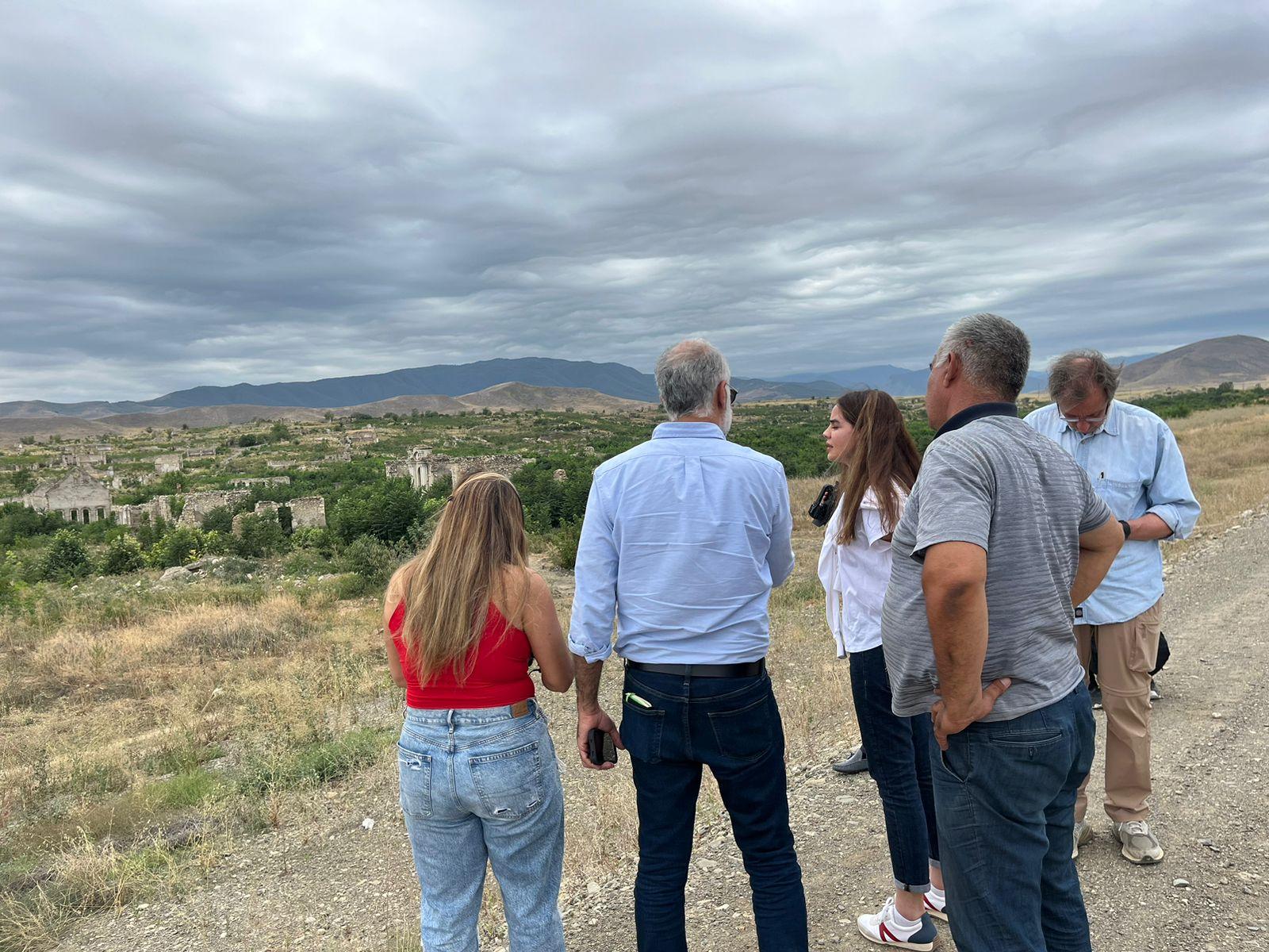 Bildirilib ki, Füzuliyə gedərkən qonaqlar yolboyu erməni barbarlığının təcəssümü olan dağıdılmış, viran qoyulmuş kəndləri, qəsəbələri seyr edib və Merdinli kəndindəki məscidə baxış keçiriblər.