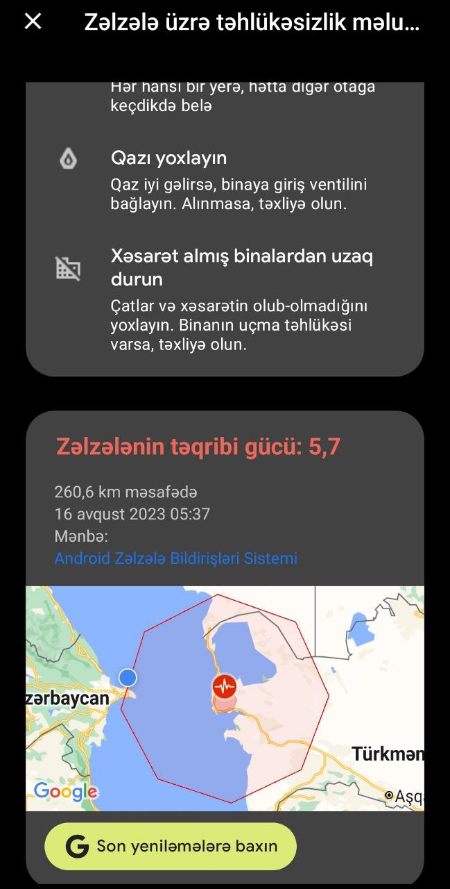 “Telefonlara gələn zəlzələ ilə bağlı məlumatın Azərbaycanla heç bir əlaqəsi yoxdur”.