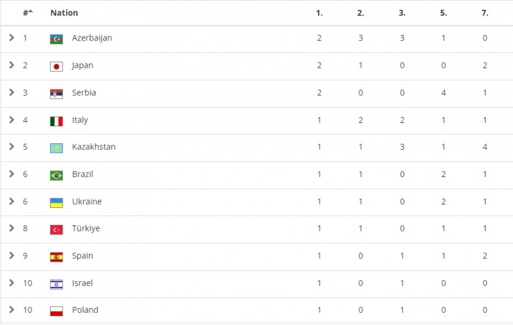 Mis.az xəbər verir ki, fərdi yarışlarda Azərbaycan yığması medal əyarına görə, ümumi hesabda və oğlanlar arasında Yaponiya, Gürcüstan, Özbəkistan, Fransa, Serbiya, İtaliya, Qazaxıstan və Braziliya kimi ölkələri geridə qoyaraq 1-ci yeri tutub. Bu, Azərbaycan yığmasının indiyə qədər iştirak etdiyi bütün Dünya çempionatlarında həm medalların sayına, həm də əyarına görə əldə etdiyi ən yaxşı nəticədir.
