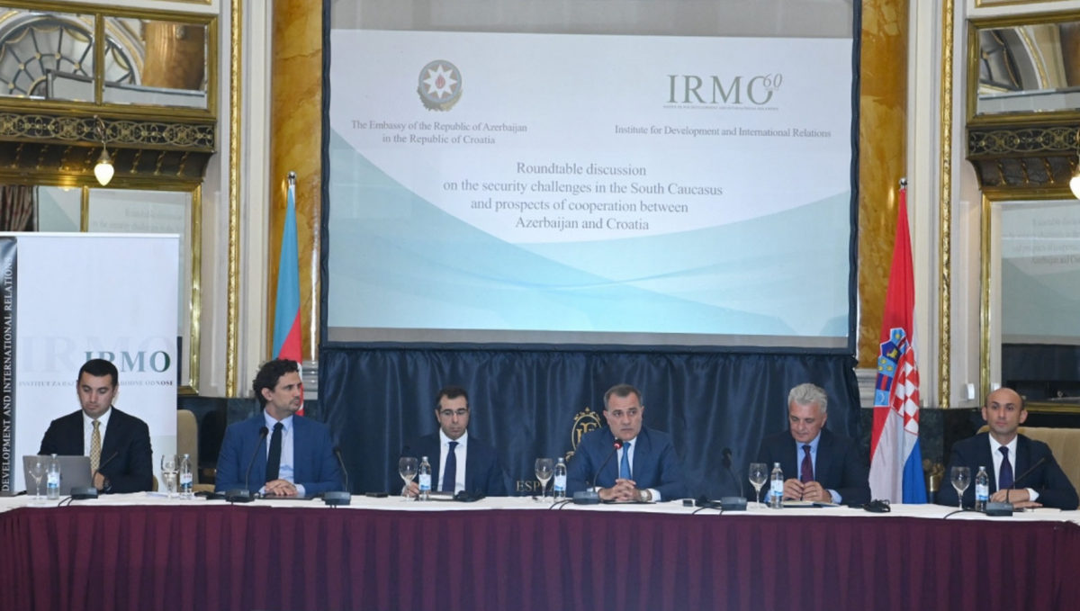 Azərbaycan Respublikasının xarici işlər naziri Ceyhun Bayramov Xorvatiya Respublikasına rəsmi səfəri çərçivəsində Xorvatiyanın İnkişaf və Beynəlxalq Əlaqələr İnstitutunun (Institute for Development and International Relations –IRMO) təşkil etdiyi “Cənubi Qafqazda təhlükəsizlik problemləri və Azərbaycan ilə Xorvatiya arasında əməkdaşlıq perspektivləri” mövzusunda dəyirmi masa müzakirələrində iştirak və çıxış edib.