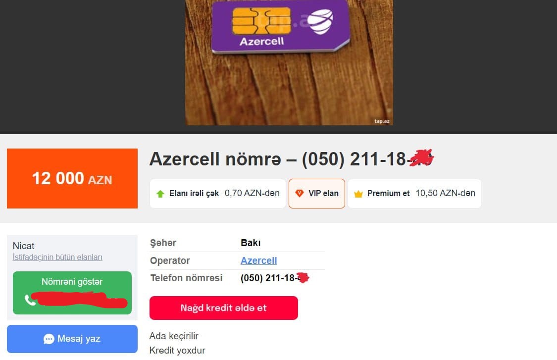 Azərbaycanda 12 min manata satılan mobil nömrə alıcıların diqqətini çəkib.