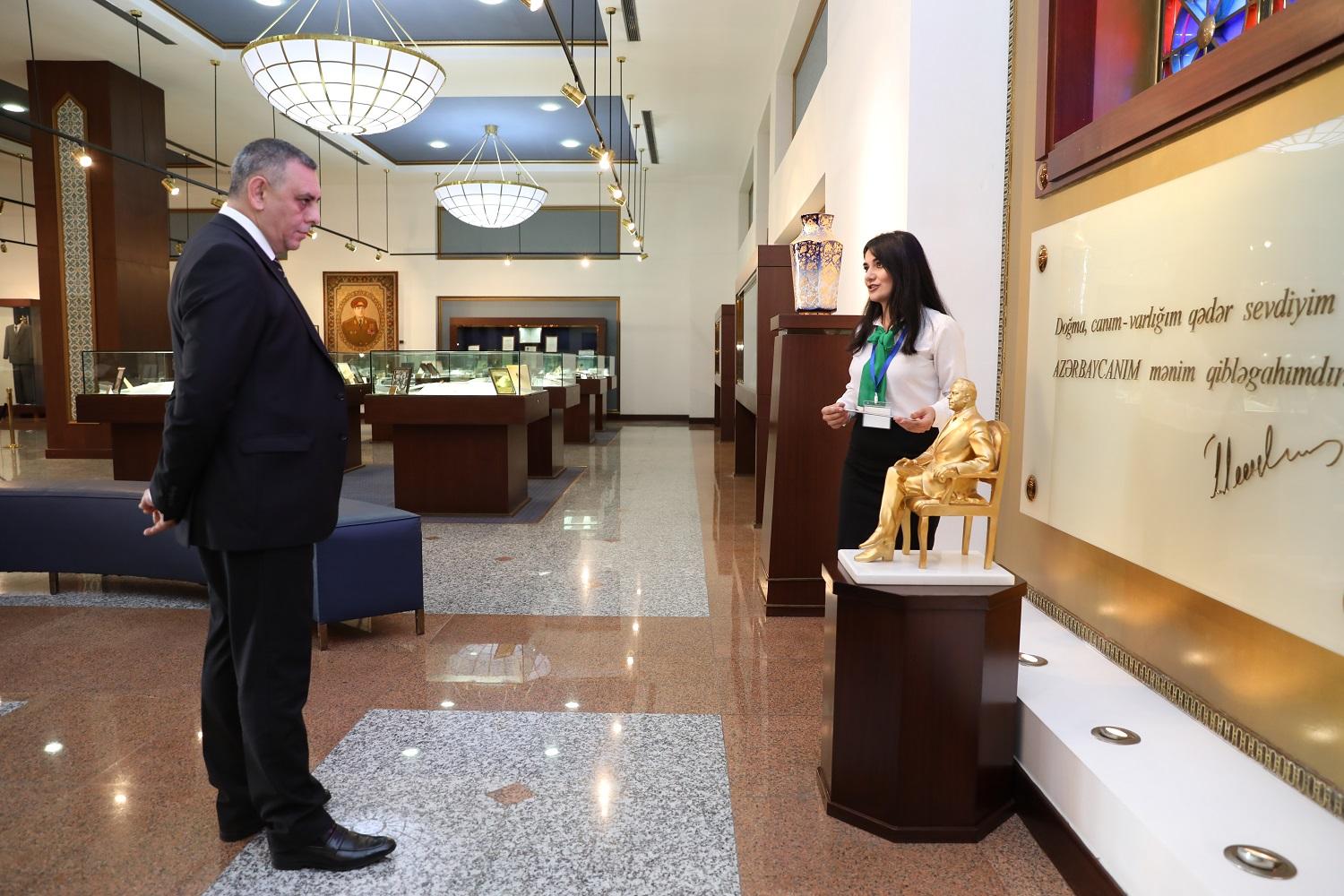 Qeyd olunub ki, qəbuldan əvvəl ümummilli lider Heydər Əliyevin abidəsi ziyarət edilərək önünə gül dəstəsi qoyulub, əziz xatirəsi ehtiramla yad edilib. Həmçinin, Heydər Əliyev Muzeyinə baş çəkilərək Ümummilli Liderin həyat və fəaliyyətinə aid fotoşəkil və eksponatlarla tanış olunub. Daha sonra Şəhidlər Xiyabanı ziyarət edilib, Azərbaycanın müstəqilliyi və ərazi bütövlüyü uğrunda canlarından keçmiş qəhrəman Vətən övladlarının xatirəsi anılıb.