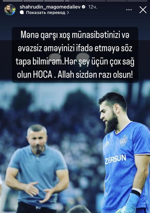 “Adana Demirspor”a keçən Şahruddin Məhəmmədəliyev Qurban Qurbanovla bağlı paylaşıb edib.