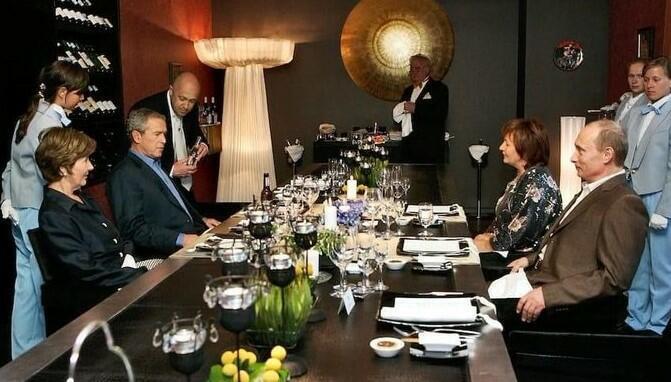 Qeyd edək ki, foto 14 iyul 2006-cı ildə Corc Buş və xanımının Putinlə şam yeməyi zamanı çəkilib. Priqojinin Buşa içki süzdüyü görünür.