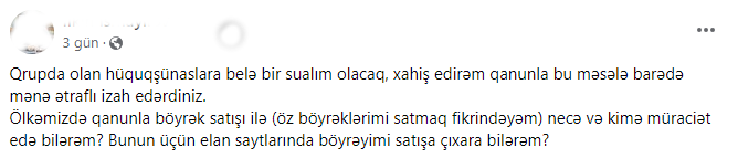 Sosial şəbəkələrdə paylaşılan elanlara gəlincə, hüquqşünas qeyd edib ki, insan orqanlarının və toxumalarının alqı-satqısı, qanunsuz donorluğu və transplantasiya Cinayət Məcəlləsinin 137-ci maddəsi ilə tənzimlənir: