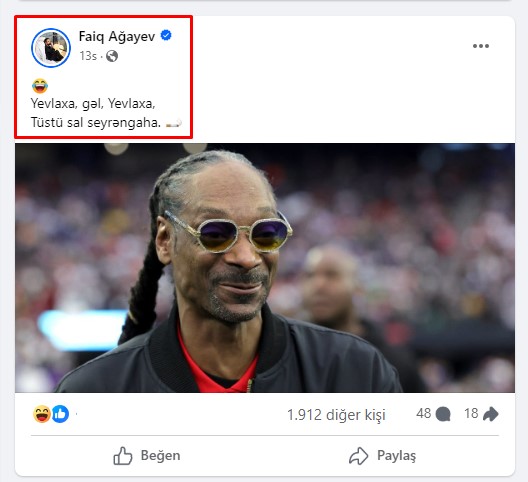 Xatırladaq ki, bir neçə gün öncə Snup Doqun Azərbaycana qarşı paylaşım etmişdi. O, sosial şəbəkə hesabında yazmışdı: "Mənim sevimli erməni xalqım, mən sizi düşünürəm və Ermənistandakı, Artsaxdakı eləcə də dünyanın hər yerindəki bütün erməni xalqına sevgilər göndərirəm. Mən sevgi və sülh gətirirəm, hər kəsə güc diləyirəm. 23 sentyabrda gəlirəm".