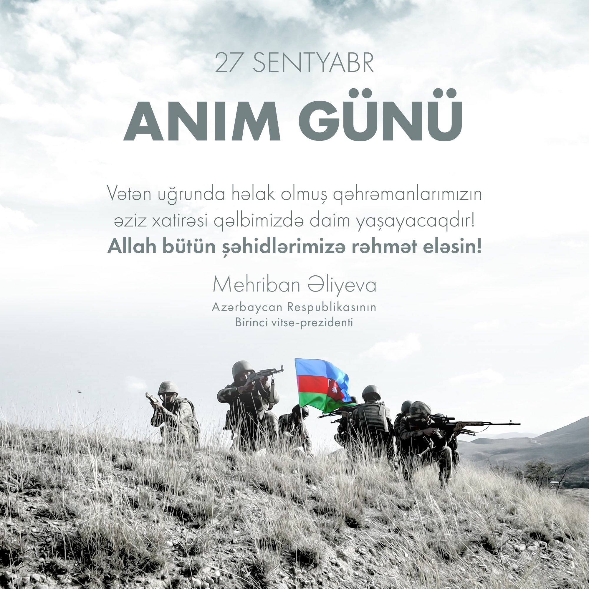 Azərbaycan Respublikasının Birinci vitse-prezidenti Mehriban Əliyeva rəsmi instaqram hesablarında 27 Sentyabr - Anım Günü ilə əlaqədar paylaşım edib.