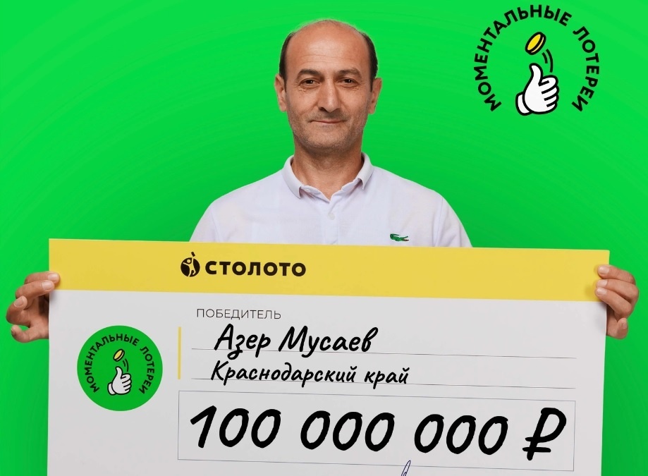 Rusiyanın Soçi şəhərində yaşayan həmyerlimiz Azər Musayev lotereyada 100 milyon rubl (1 milyon dollar) udub.