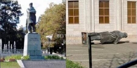 Xankəndidə boşevik liderlərdən olan erməni Stepan Şaumyanın heykəli sökülüb.