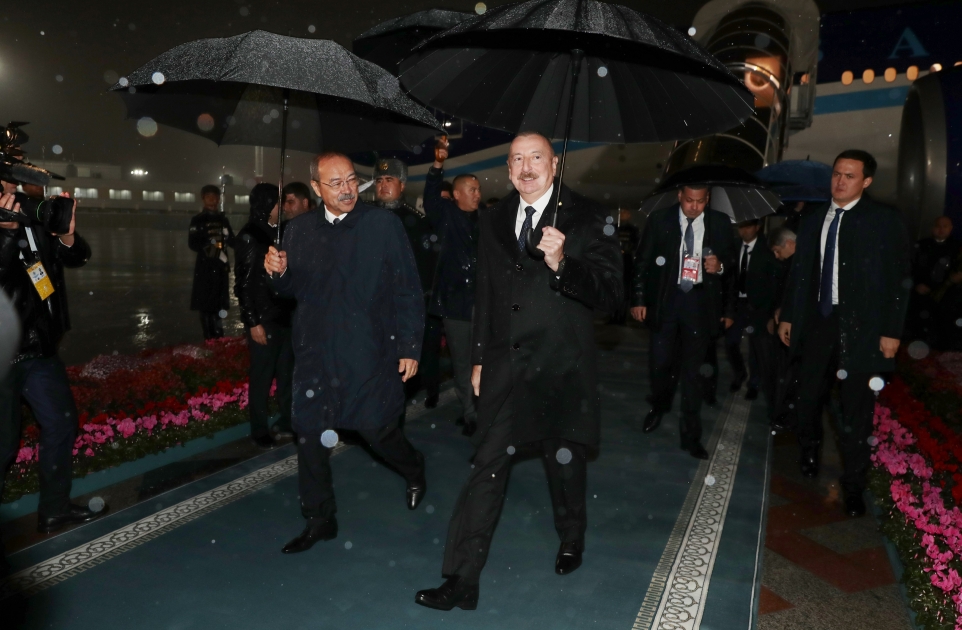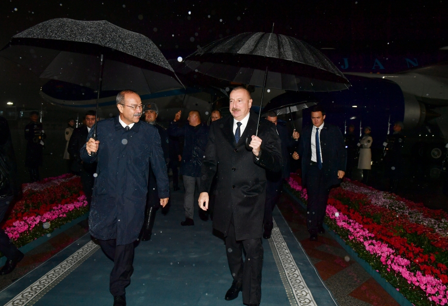 Azərbaycan Prezidentini Özbəkistanın Baş naziri Abdulla Aripov və digər rəsmi şəxslər qarşıladılar.