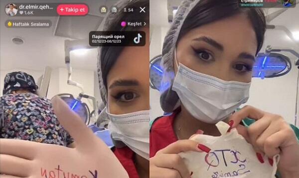 Belə ki, əməliyyat gedərkən həkimin assistenti olduğunu bildirən xanım Tiktok platformasında canlı yayım açıb. Canlı yayım zamanı izləyicilər şərh bölməsindən xanıma "Komutan", XTQ, "Hidayət" kimi sözləri əlinə yazmasını istəyirlər. Xanım isə əlcəklərin üzərinə qeyd edilən sözləri yazır.