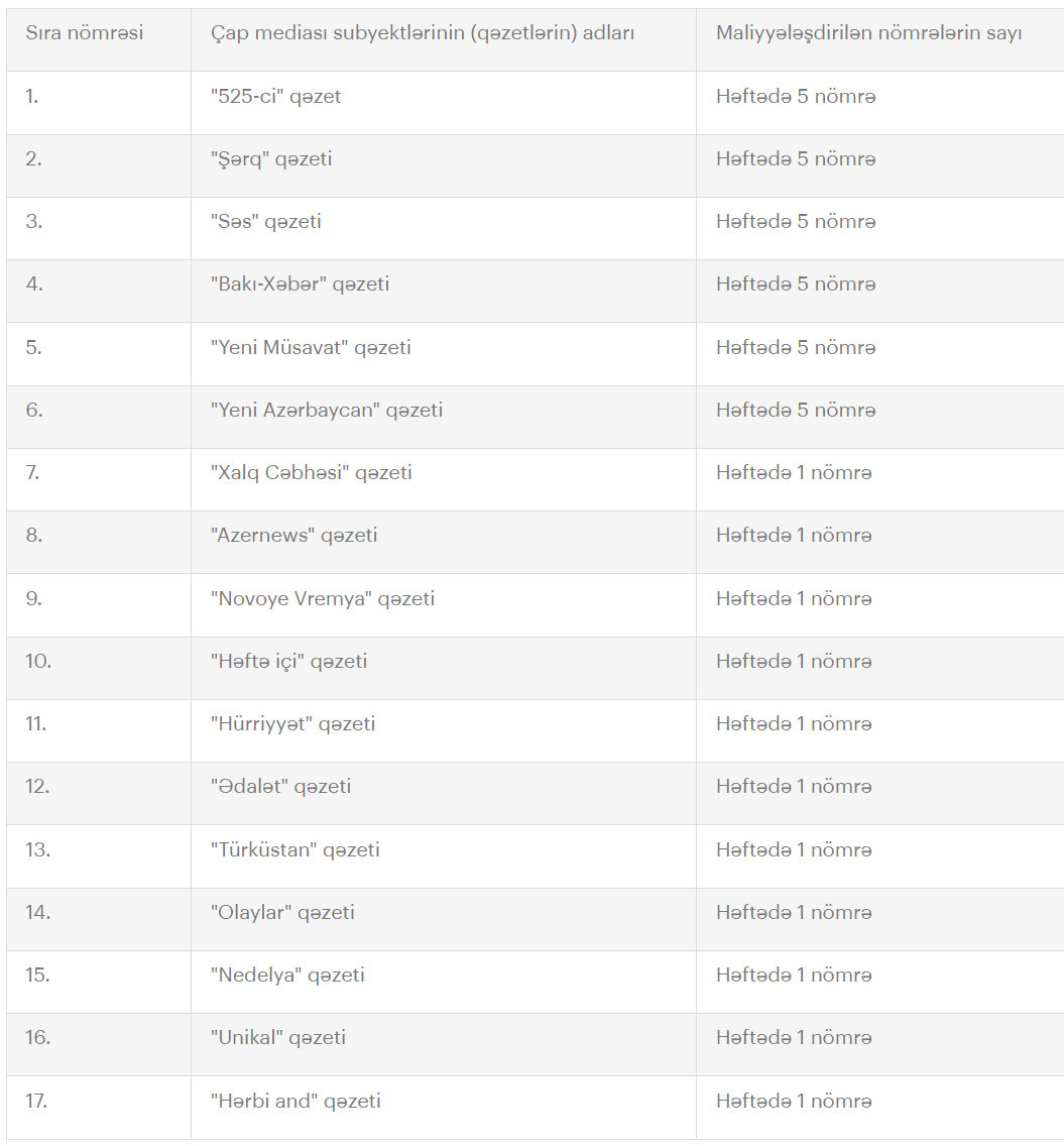 Medianın İnkişafı Agentliyi (MEDİA) tərəfindən çap mediası subyektlərinə dəstək layihəsi çərçivəsində elan edilmiş müsabiqənin nəticələri açıqlanıb.
