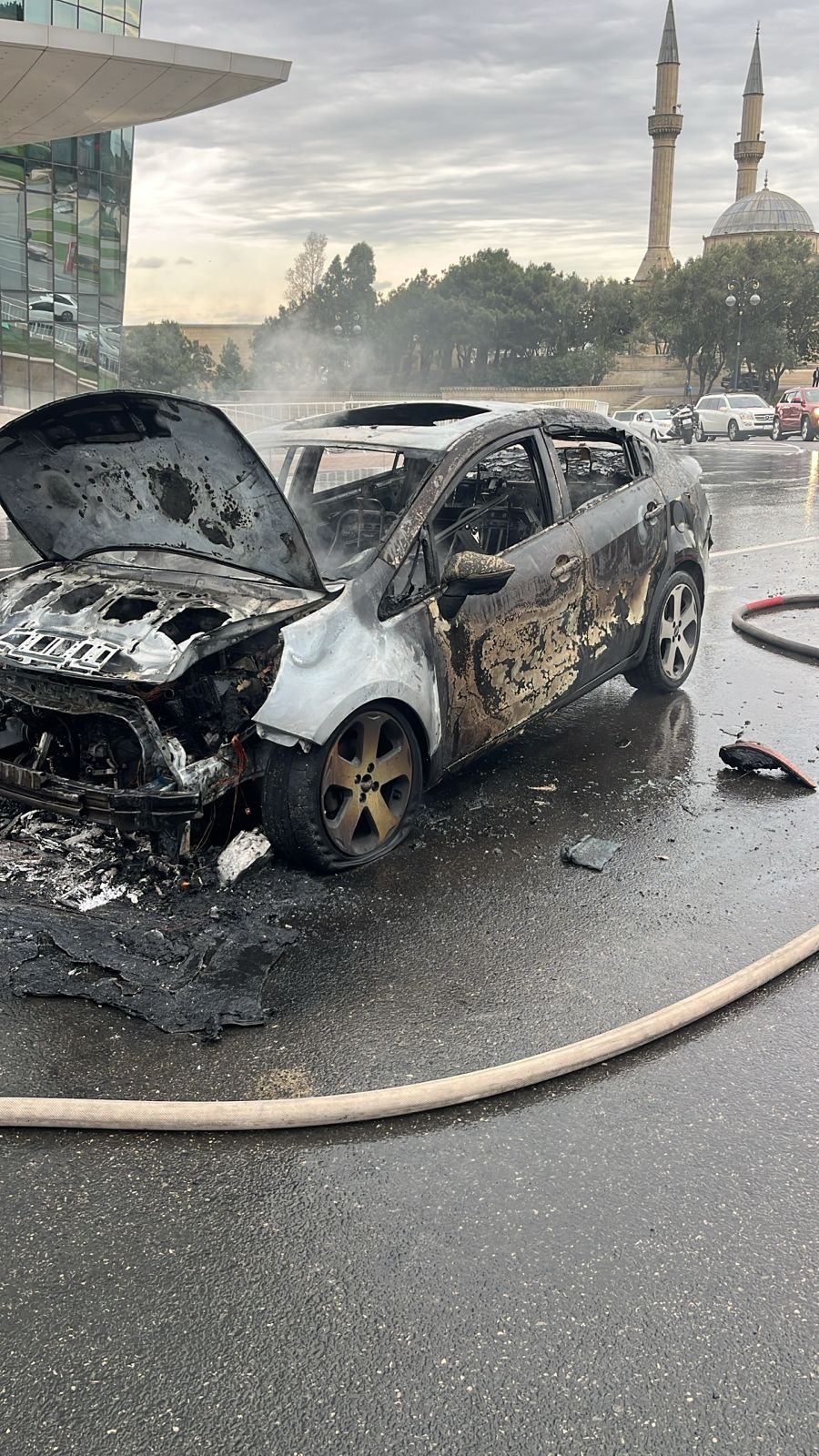 Bakıda Milli Məclisin qarşısında avtomobil yanıb.