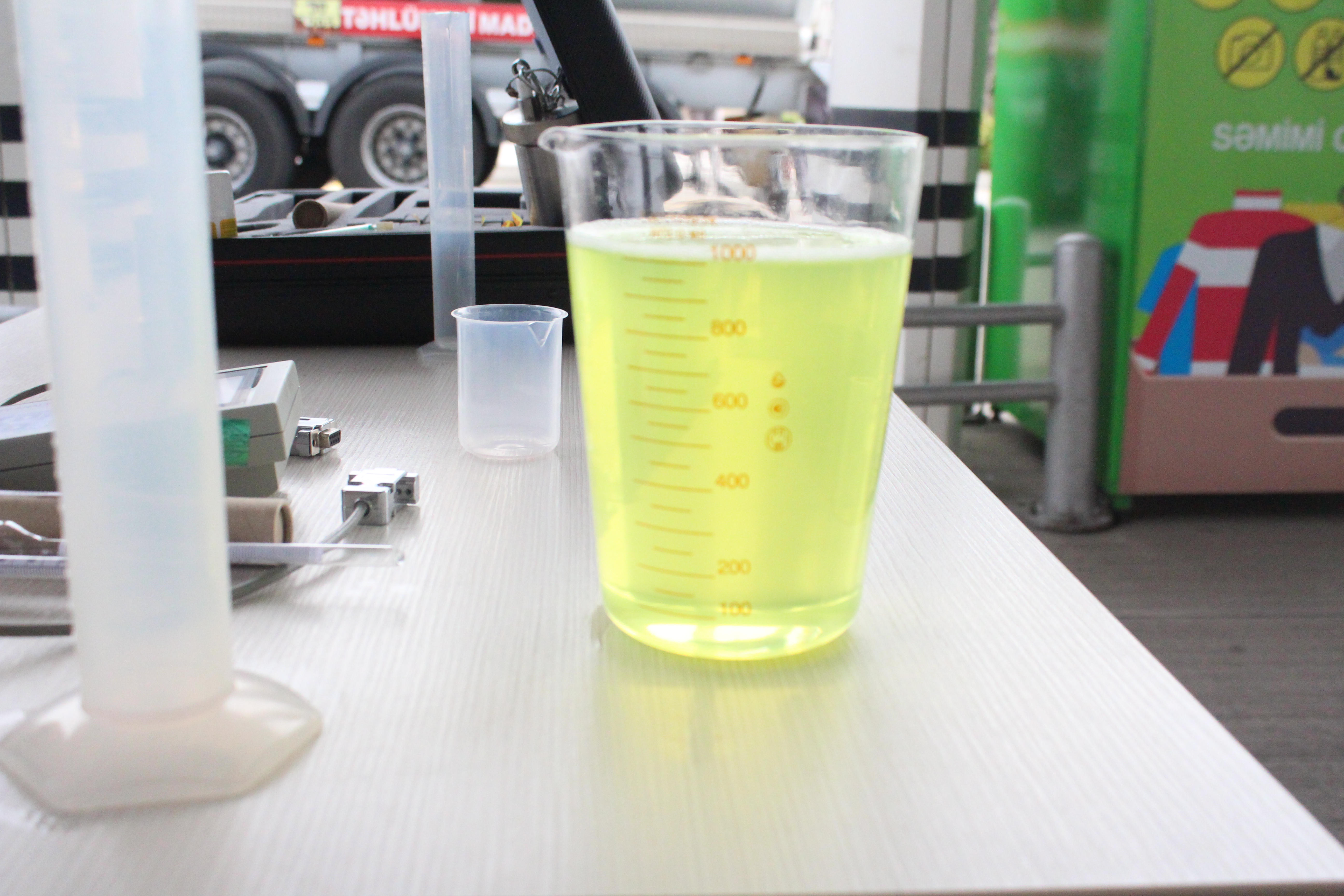 Ədalət Hüseynov deyir ki, dizel yanacağında əsas keyfiyyət göstəricilərindən biri setan ədədi hesab olunur: “Dizeldə setanın norması 46-51-dir, bizdə isə 53 setan ədədidir, -24 onun donma dərəcəsinin göstəricisidir. Sıxlıq isə 830-880 kq/sm3-dir arası dəyişilə bilər, biz yoxlayanda gördüyünüz kimi 850 kq/sm3 oldu”.