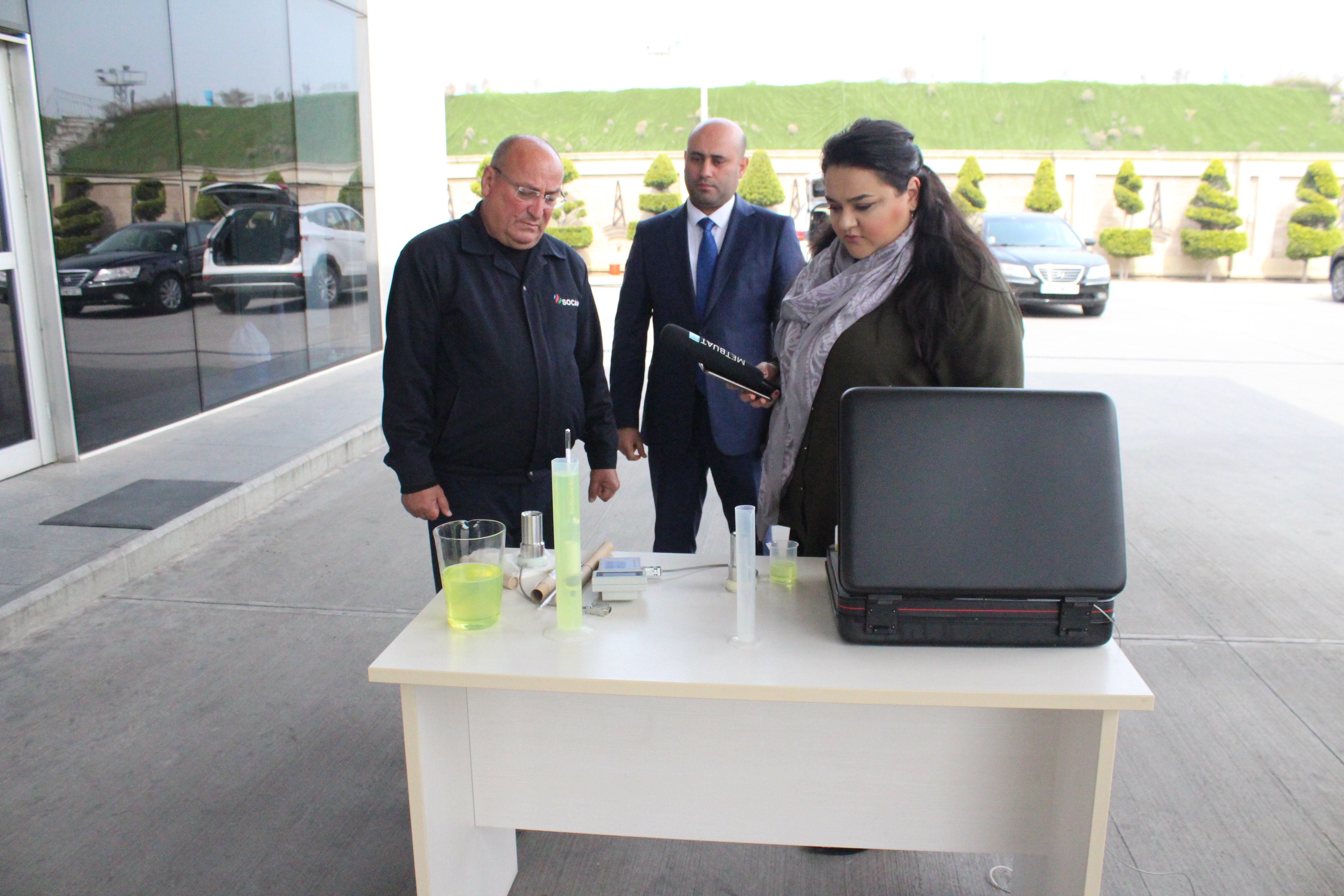 Biz “SOCAR PETROLEUM”un yanacaqdoldurma məntəqəsində olan zaman Ədalət Hüseynov cihaz vasitəsilə yenidən yanacağın keyfiyyətini yoxladı: “Biz hazırda A92 yanacağının 14 dərəcə selsidə oktan ədədini ölçürük. Çənlərimiz yerin altında yerləşir. Bu isəqış və yay mövsümlərində sutkanın saatından asılı olmayaraq yanacaq temperaturunun stabil qalmasına şərait yaradır. Hazırda yoxladığımız nümunədə A92 yanacağı üçün oktan ədədi 92,3 göstərir”.