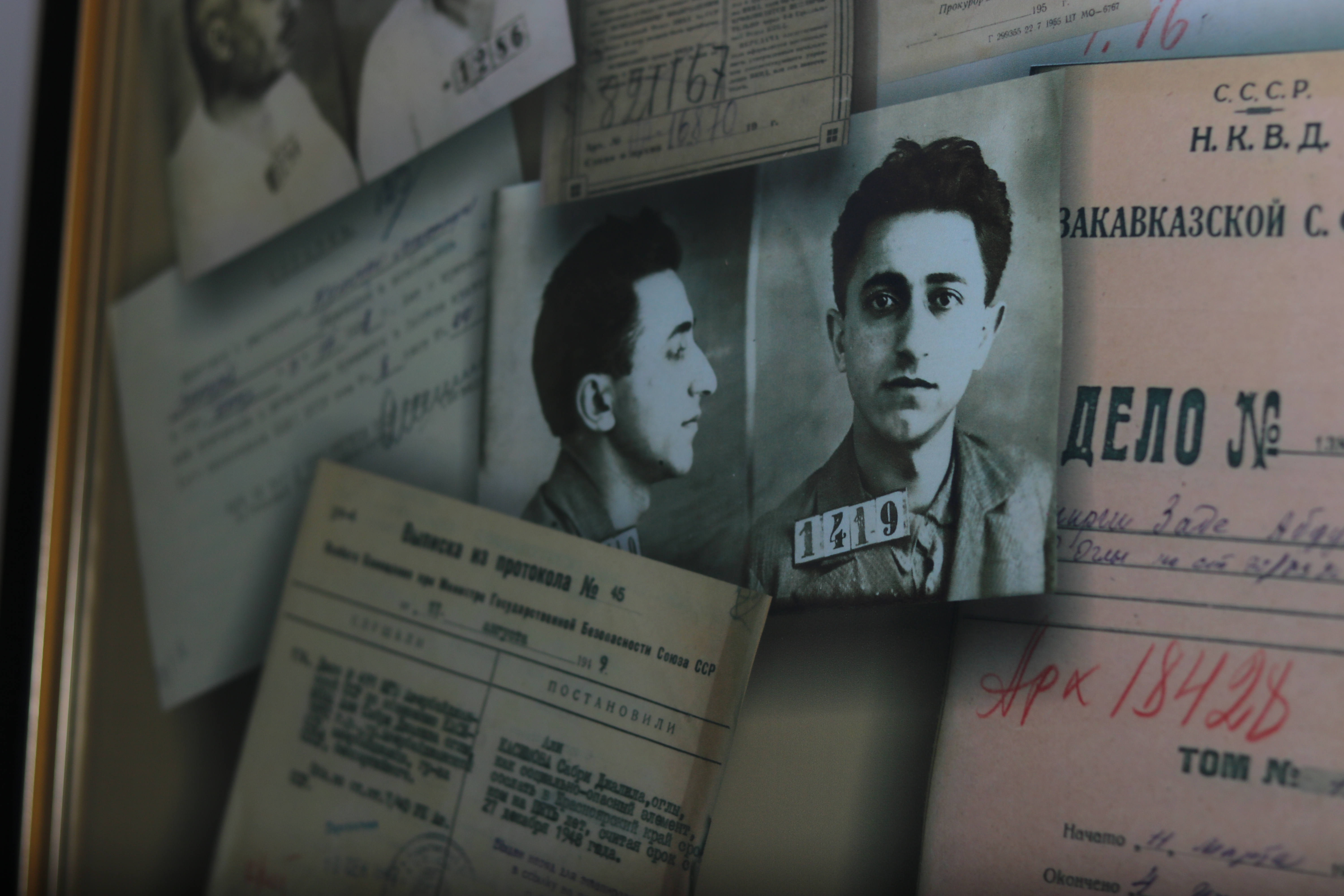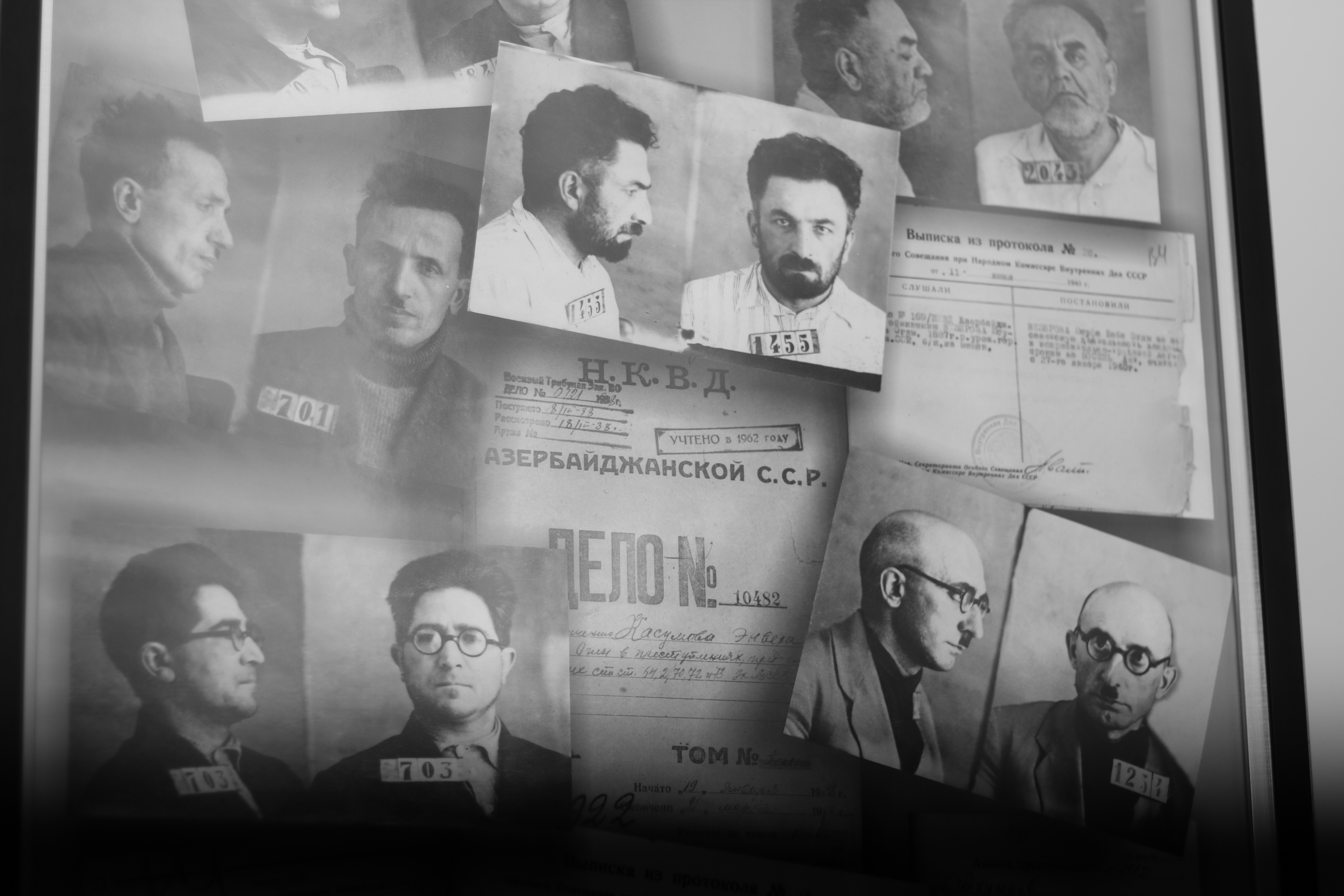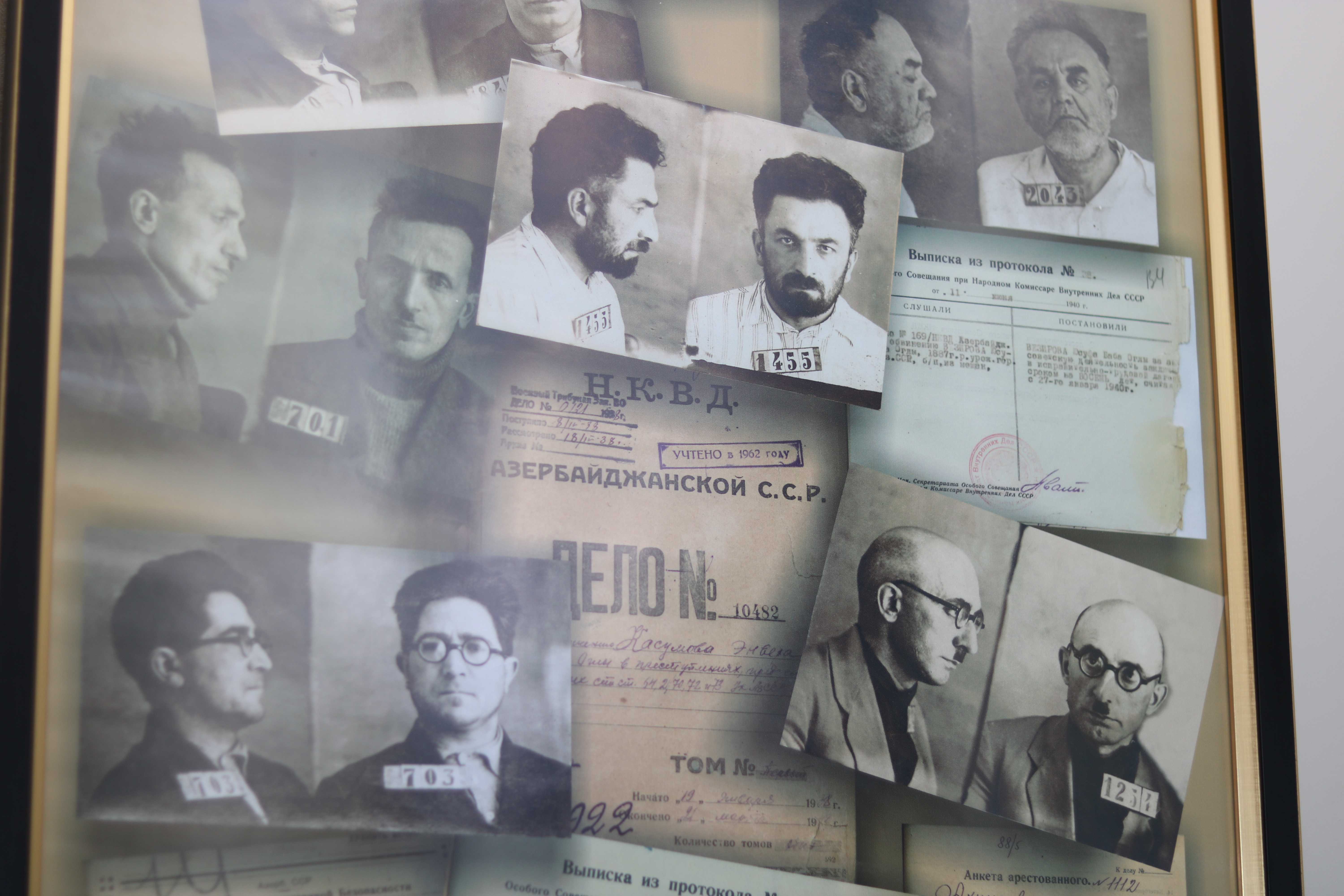 Muzeyin bu bölməsində eyni zamanda 1930-cu illərdə Azərbaycanın ziyalı təbəqəsinə qarşı törədilən kütləvi repressiyalar barədə də məlumat və fotolar nümayiş olunur: “Bu bölmədə nümayiş olunan rəsm əsəri rəssam Oqtay Sadıqzadənin rəsm əsəridir, əsər “Qara yazı” adlanır. Azərbaycanın şair, yazıçı və ədiblərindən Mikayıl Müşfiq, Əhməd Cavad, Hüseyn Cavid, Yusif Vəzir Çəmənzəminli represiyya qurbanı olublar. Həmin bu vitrinlərdə saxlanılan sənədlər isə Azərbaycanın yazıçı və şairlərinə, mədəniyyət xadimlərinə açılmış cinayət işlərindən sənədlərdir. 1937-ci ildə isə 16 Azərbaycan generalı qətlə yetirilib”.