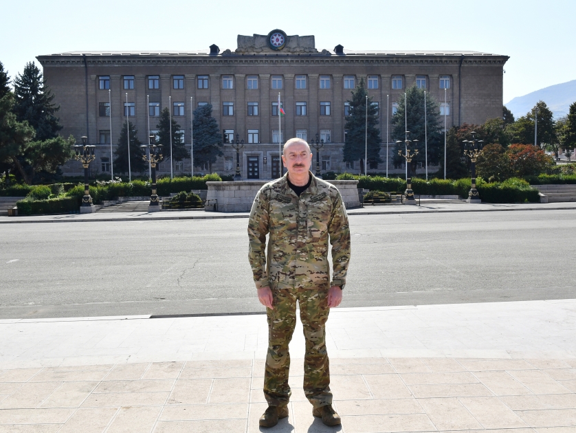 Xəbər verdiyimiz kimi, bu gün Prezident İlham Əliyev Xankəndi şəhərində Azərbaycan Dövlət Bayrağını ucaldıb və çıxış edib.