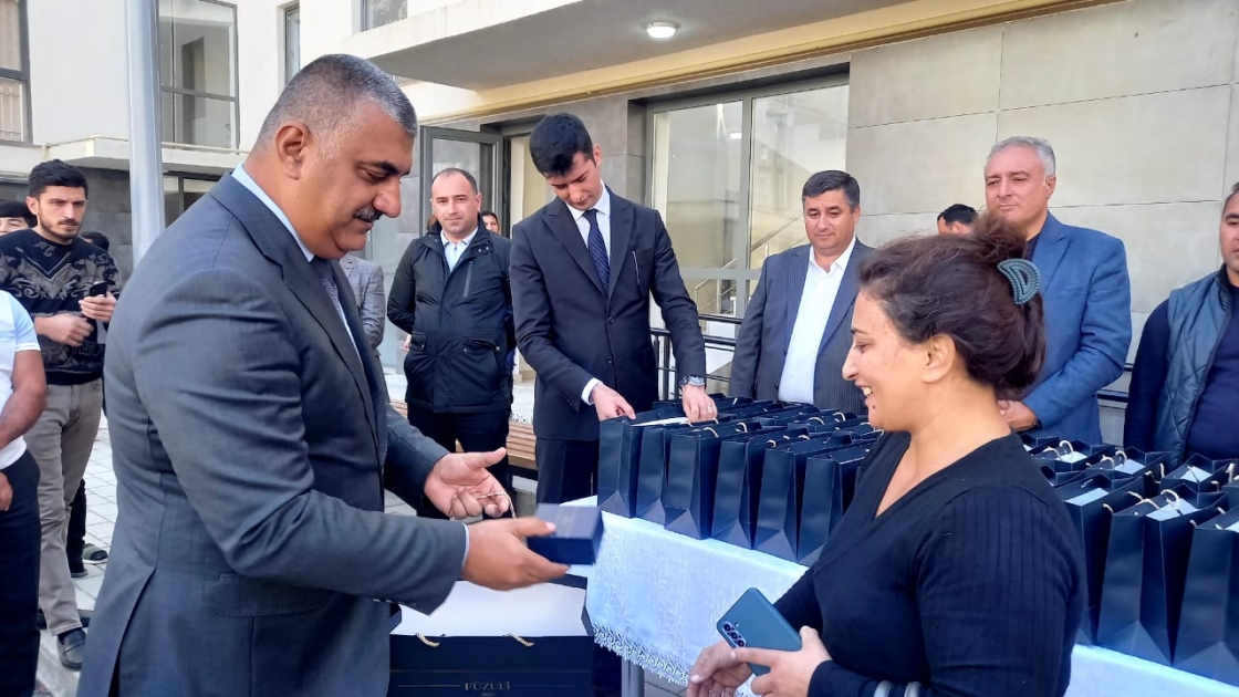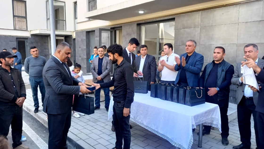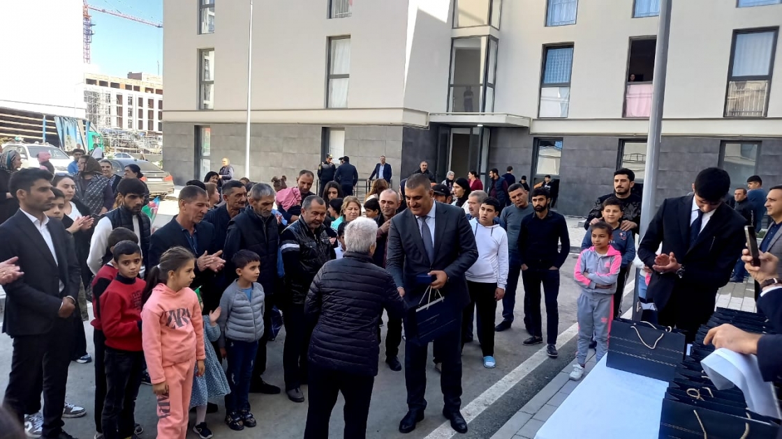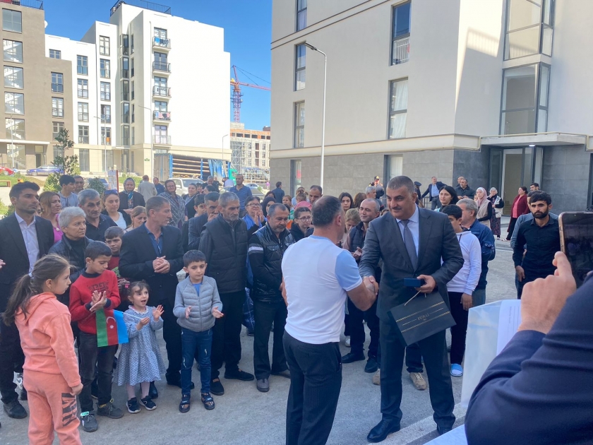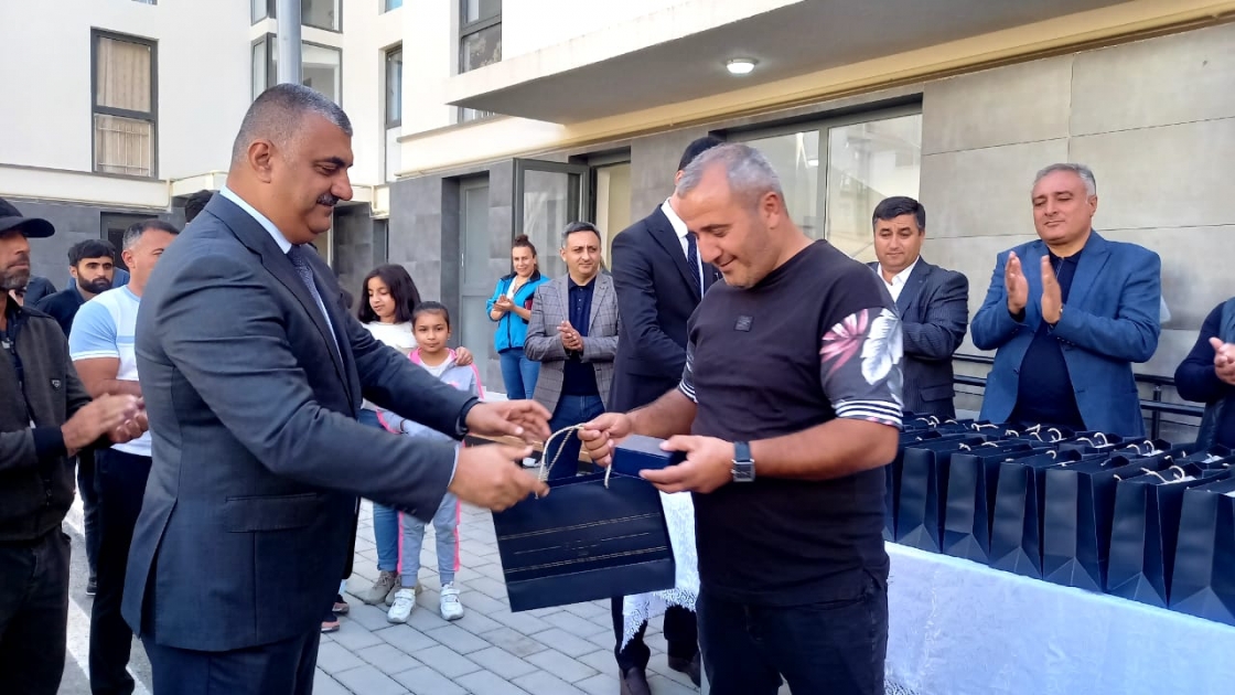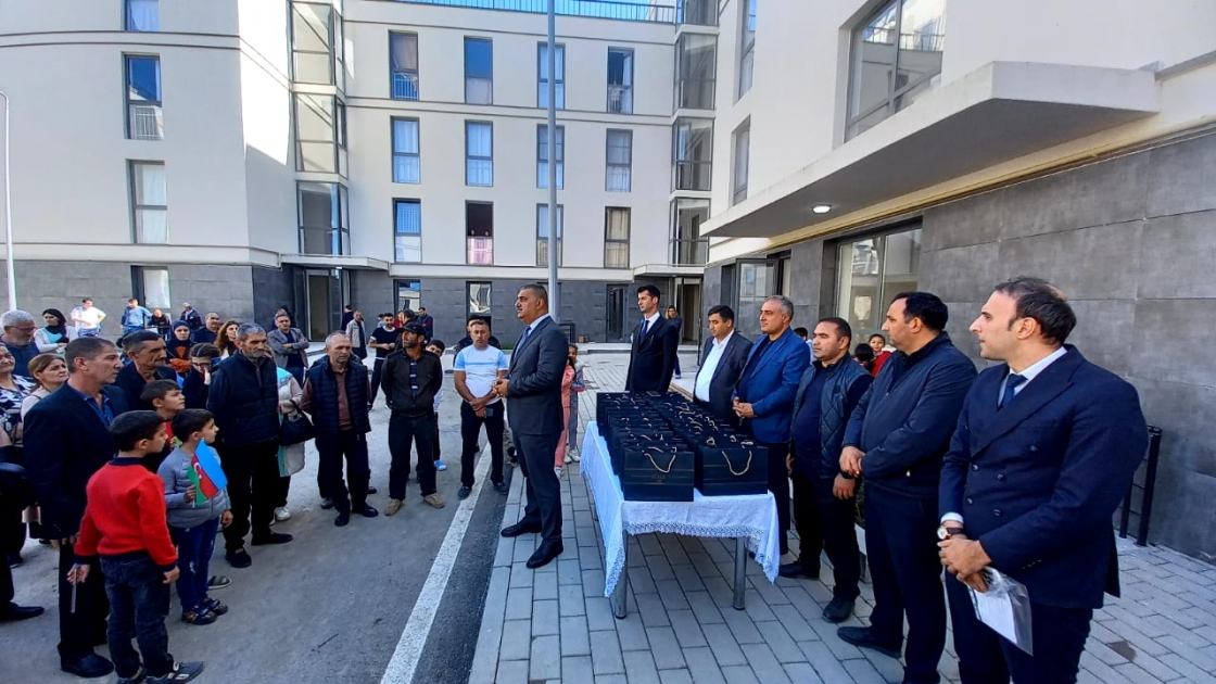 Qarabağ iqtisadi rayonuna daxil olan işğaldan azad edilmiş ərazilərdə (Şuşa rayonu istisna olmaqla) Azərbaycan Respublikası Prezidentinin xüsusi nümayəndəliyinin əməkdaşı Eldar Seyidov mənzillərin açarlarını ailələrə təqdim edib.