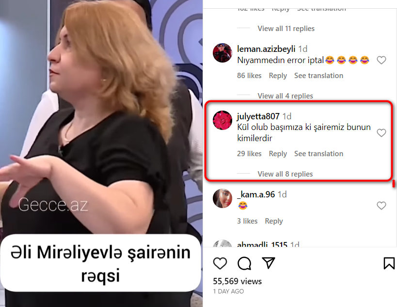 Mis.az xəbər verir ki, verilişdə iştirak edən şairə İlhamə Elşadqızı ilə müğənni Əli Mirəliyevin rəqsi izləyicilər tərəfindən birmənalı qarşılanmayıb. Onlar şairənin rəqsinin efirə yaraşmadığını qeyd ediblər.