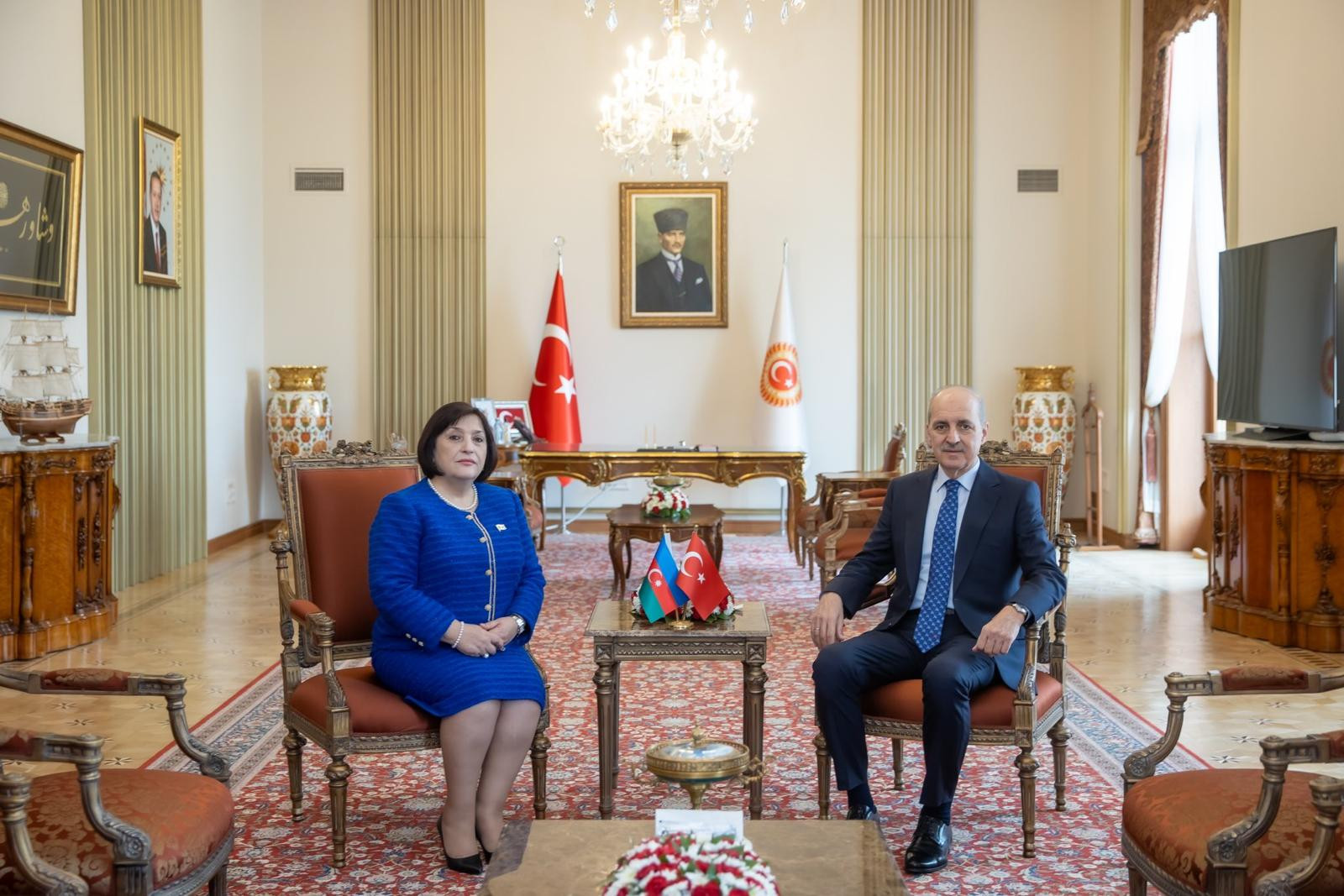 Türkiyə Böyük Millət Məclisinin sədri Numan Kurtulmuşun Azərbaycan Milli Məclisinin sədri Sahibə Qafarova ilə təkbətək və nümayəndə heyətləri arası görüşü olub.