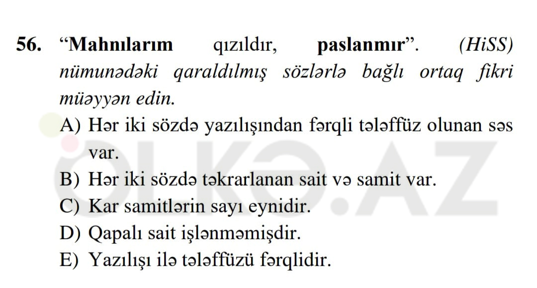 Qeyd olunur ki, sözügedən suallar Dövlət İmtahan Mərkəzinin bazası əsasında hazırlanıb və bu cür suallar digər tədris mərkəzlərinin də imtahanına salınıb.