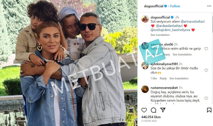 Mis.az xəbər verir ki, Türkiyə və yerli mediada müzakirə olunan iddialar səngimək bilmir. Belə bir məqamda Doğuş sosial media hesabında paylaşım edib. O, paylaşımına ailə fotosunu əlavə edərək "Sizi seviyorum ailem", - deyə qeyd edib.