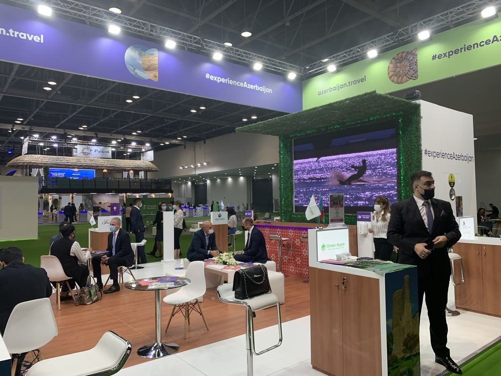 Pandemiya şəraitində sosial izolyasiya qaydaları nəzərə alınaraq təşkil olunan beynəlxalq sərgidə Azərbaycan 100 kvadrat metrlik sahəni əhatə edən milli stendlə təmsil olunur.