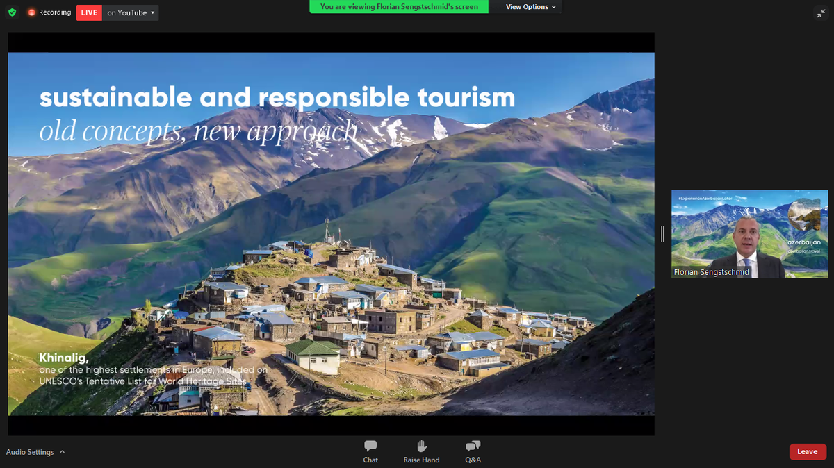 Florian Zenqstşmid, həmçinin ekoturizmlə bağlı təkliflər, turistlərin sağlamlığı və təhlükəsizliyi üçün görülən tədbirlər, rəqəmsal platformların inkişafı, eləcə də işğaldan azad olunmuş ərazilərin turizm imkanları haqqında danışıb.