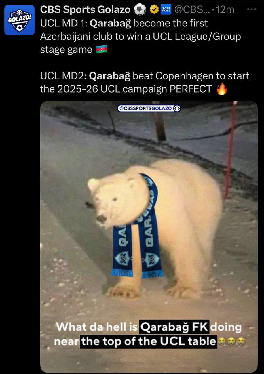 Amerikanın nüfuzlu "CBS" nəşri Azərbaycan təmsilçisi “Qarabağ”ın Çempionlar Liqasındakı parlaq çıxışına diqqət çəkib.