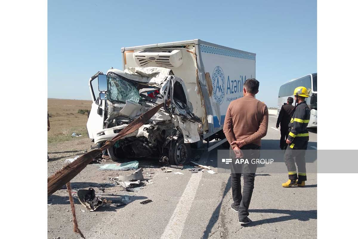 "AzəriMed" QSC-yə məxsus “İsuzu” markalı avtomobil arxadan “KamAZ” markalı avtomobilə çırpılıb. Nəticədə “İsuzu”-nun sürücüsü Bakı sakini, 1994-cü il təvəllüdlü Sadıqov Sadıq Vasif oğlu hadisə yerində ölüb. Sərnişin Goranboy sakini, 1987-ci il təvəllüdlü Asanov Aslan Mikayıl oğlu Şirvan xəstəxanasına yerləşdirilib.