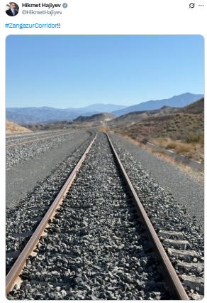 Azərbaycan Prezidentinin köməkçisi - Prezident Administrasiyasının Xarici siyasət məsələləri şöbəsinin müdiri Hikmət Hacıyev Zəngəzur dəhlizindən görütülər paylaşıb.