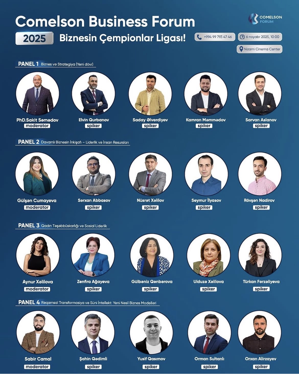 6 noyabr 2025-ci il tarixində Nizami Kino Mərkəzində Azərbaycanın biznes aləminin ən nüfuzlu tədbirlərindən biri " Comelson Business Forum 2025" baş tutacaq.